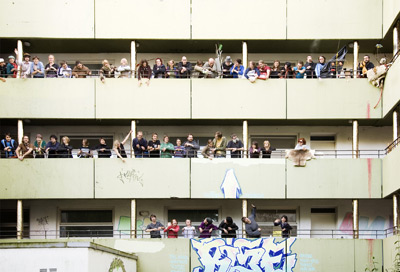 | SPROSSENWAND Schreibwerkstatt / Redaktion der Wandzeitung „Sprossenwand“ . Die Schreibwerkstatt befasst sich mit Aspekten des Wohnens und dem Stadtteil Tenever aus verschiedenen Blickwinkeln und mittels unterschiedlicher Stile des Schreibens. Sie ist grundsätzlich für alle Schreibinteressierten in und um den Sproutbau offen und dient als Informations-, Unterhaltungs- und Kommunikationsplattform für das Projekt. Die publizierten Texte werden auf der blauen Wand im Durchgang zum Innenhof (gegenüber der Graffiti-Wände) anplakatiert. |